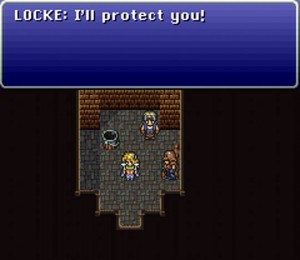 In Final Fantasy VI, Locke is a thief with a vendetta against the Empire for destroying his hometown. Despite his ire, he ends up saving Celes, who was once a general of the Empire. He sees that she was being exploited and vows to protect her. After the World or Ruin incident in the middle of the game, Celes begins to better understand her own feelings for Locke, resulting in a relationship between an enemy of the Empire and the Empire incarnate.