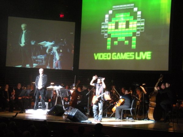 Now, let’s get one thing clear: this is not your ordinary "sit and watch a orchestra play music" concert. It resembles more of a rock show than anything else. Lights, smoke, giant video screens that play clips of the games that the music is from, all of that comes in the total VGL package. Not only that, but audience interaction is a big part of it too, as two audience members were selected to participate in contests for big prizes. What did I see at Video Games Live? Well, I’ll tell you…